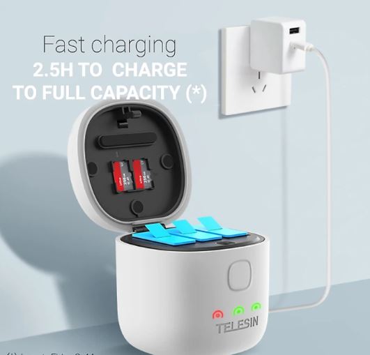 - Bộ sạc 3 trong 1: Với chức năng đầu đọc thẻ TF lưu trữ sạc, có thể sạc 3 pin cùng lúc, có thể chứa 3 pin GoPro và 3 thẻ TF cùng một lúc, cũng có thể được sử dụng như một đầu đọc thẻ, có thể kết nối trực tiếp với máy tính thông qua cáp USB, rất thiết thực.