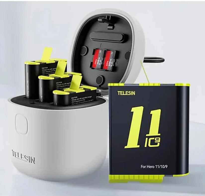 Pin và Dock sạc Allin Box Telesin Gopro Gopro 12 11 10 9 Black chống nước hỗ trợ đọc thẻ TF