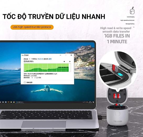 - Khả năng tương thích: Cả pin và bộ sạc đều phù hợp với GoPro Hero 5/6/7 Black, cũng hỗ trợ sạc pin chính hãng (Không hỗ trợ sạc pin chính hãng GoPro và pin TELESIN cùng lúc).