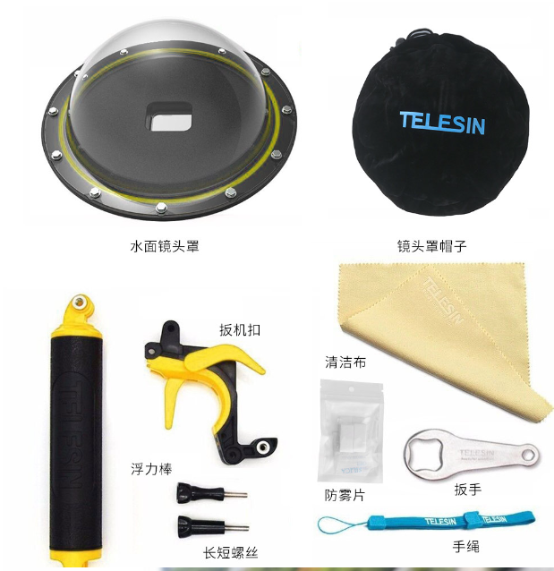 DOME PORT TELESIN GOPRO 12 11/10/9/8/7/6/5 QUAY NỬA TRÊN VÀ NỬA DƯỚI