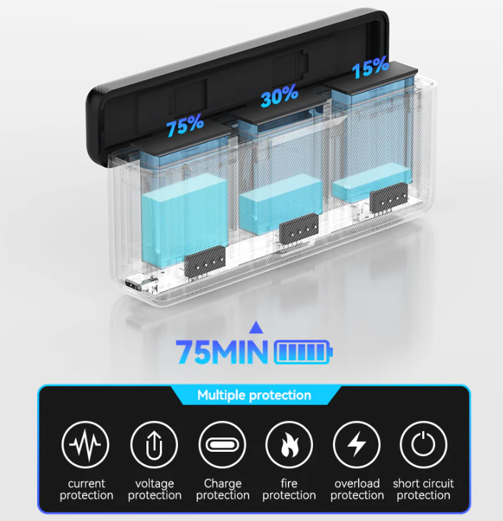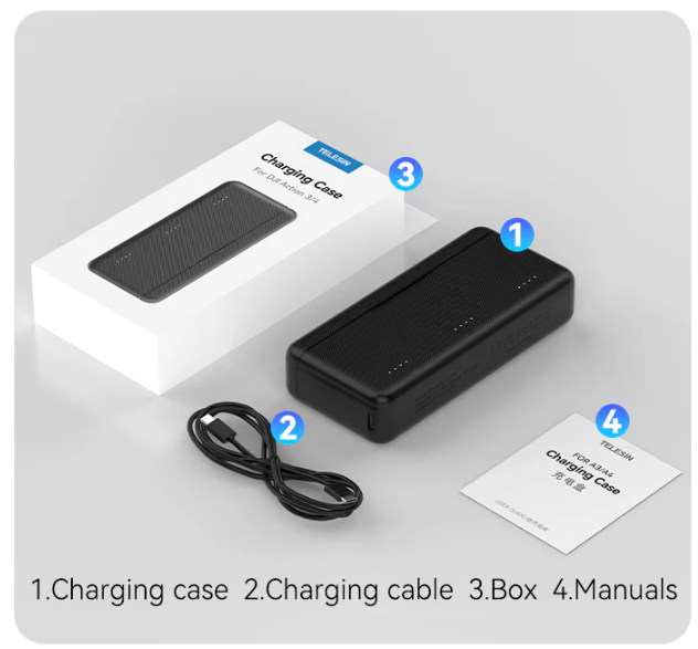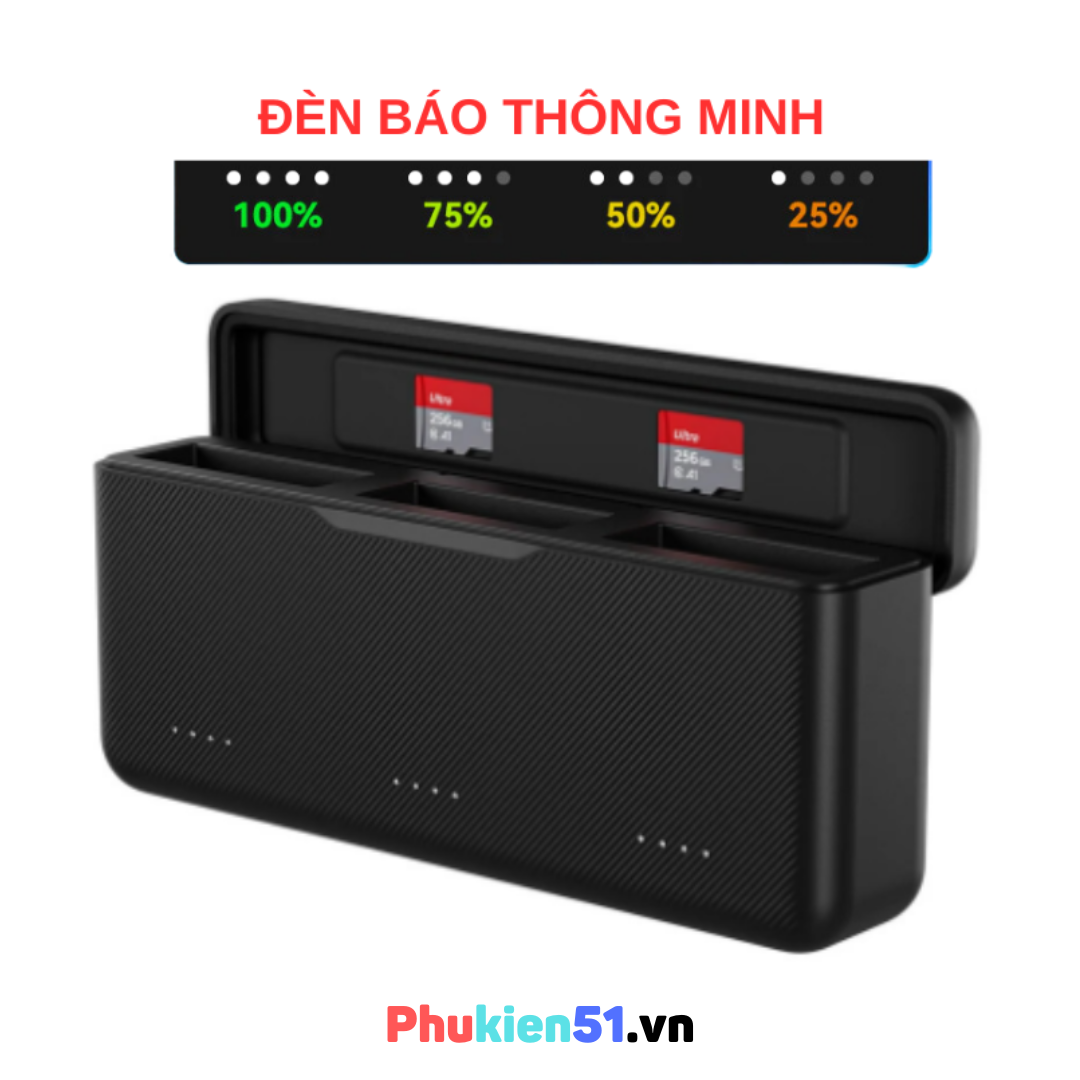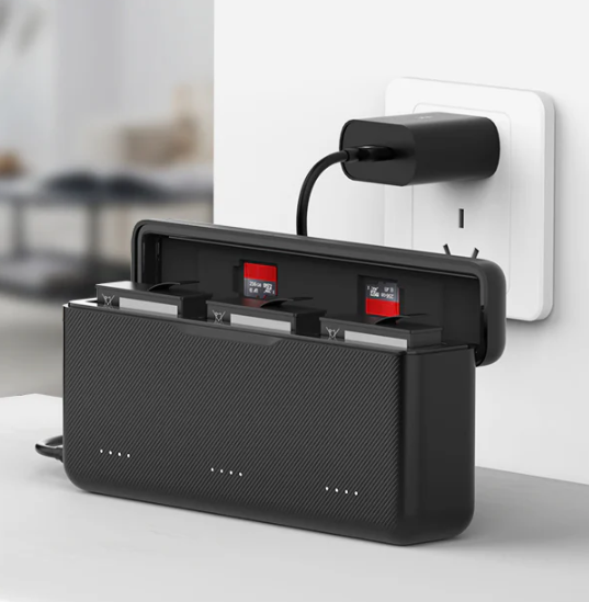 Hộp Sạc TELESIN cho Action 4 3 có đèn báo dung lượng 3 khe sạc tiện lợi sạc nhanh