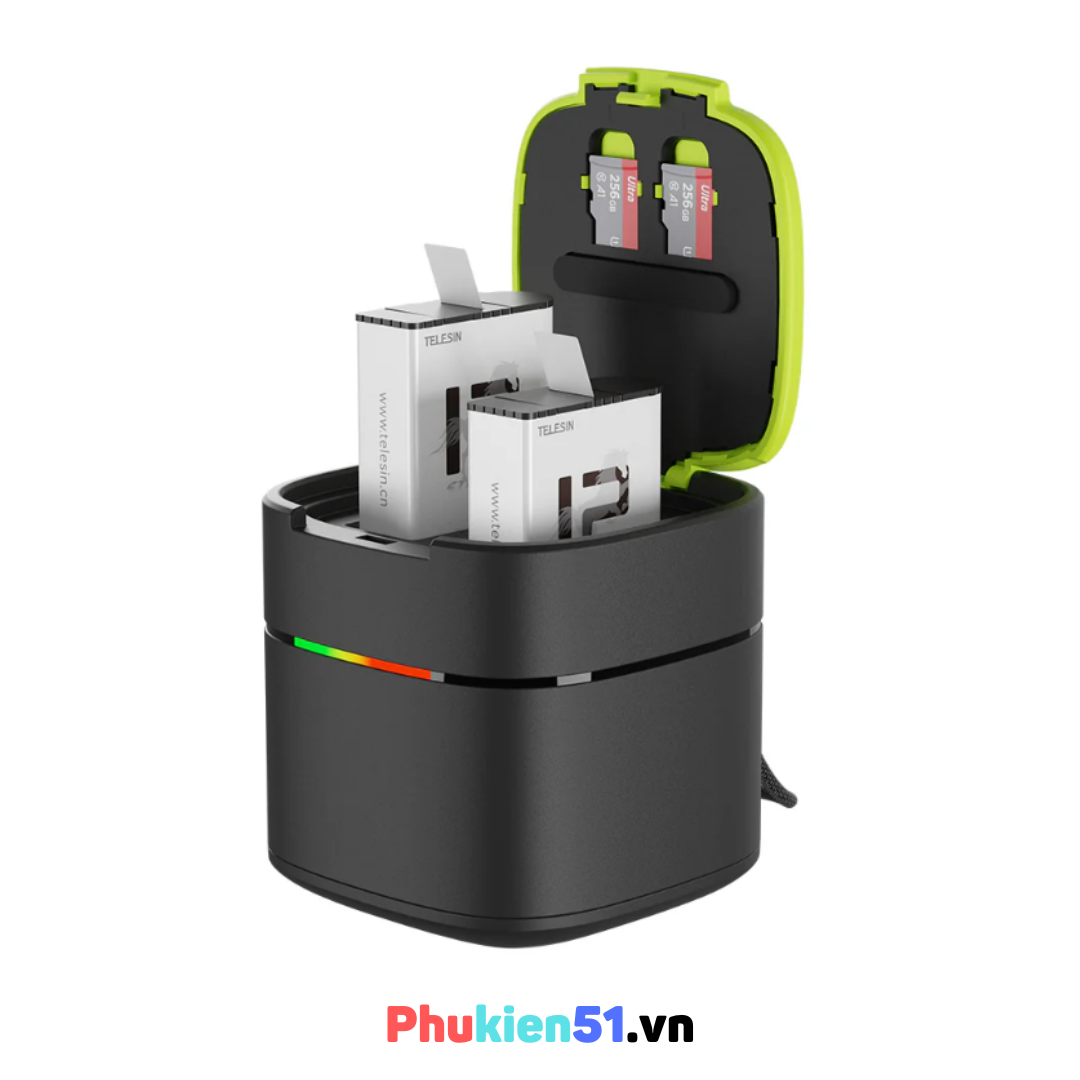 Năp sạc Telesin tích hợp sạc rời Gopro 13 12 11 10 9 Black tiện lợi