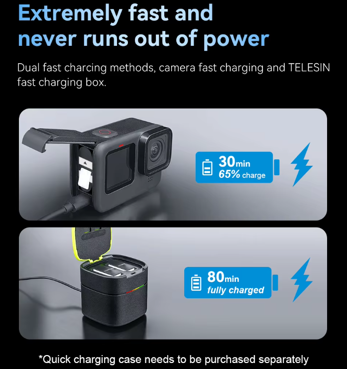 Pin Stamina và Hộp sạc nhanh Gopro 12 11 10 9 Black hiệu suất cao