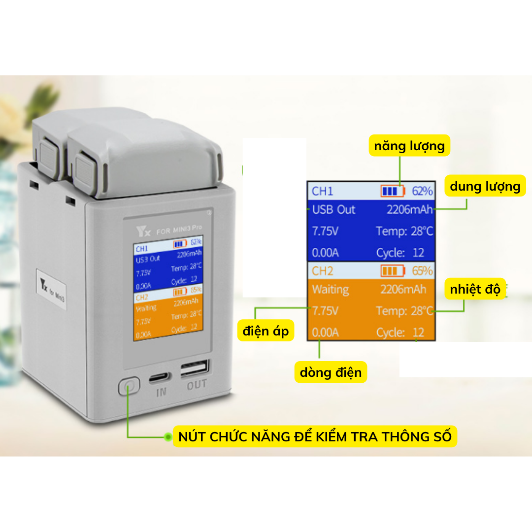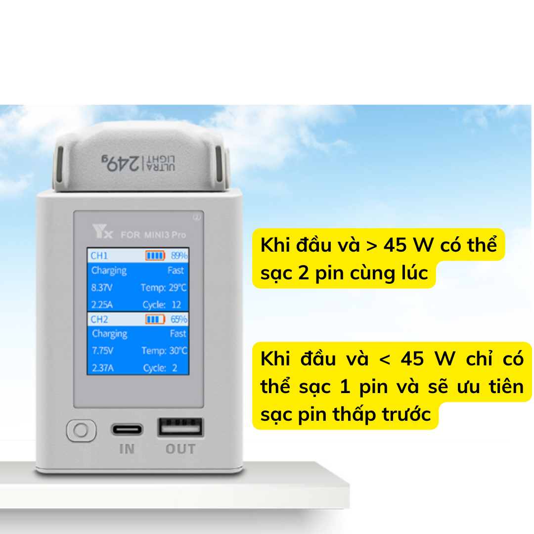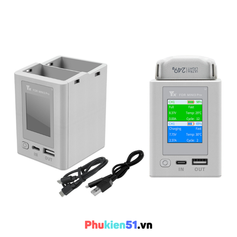 Hub sạc YX 2 khe pin DJI Mini 3 / Mini 3 pro/ Mini 4 Pro tối đa 35W 65W 2 chiều