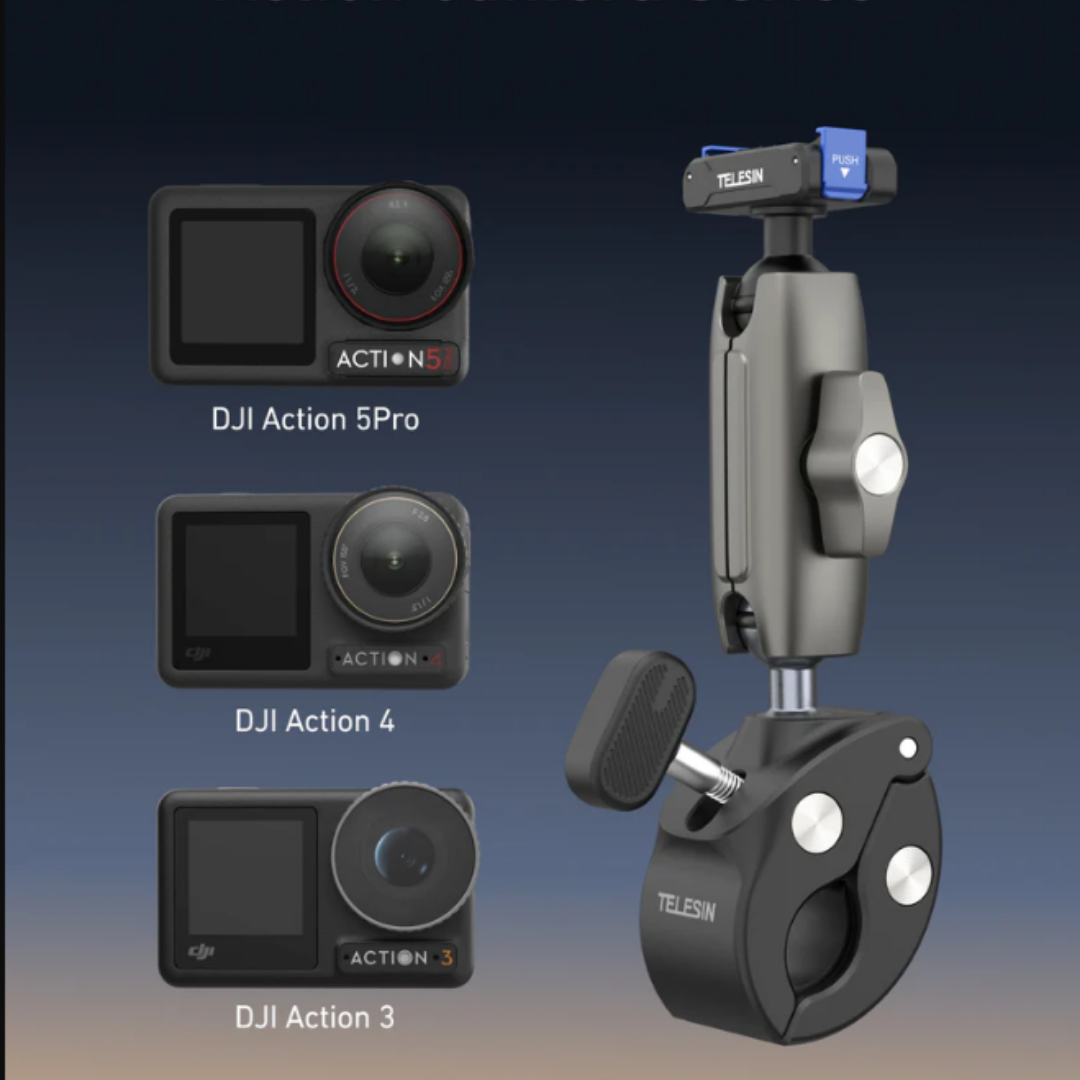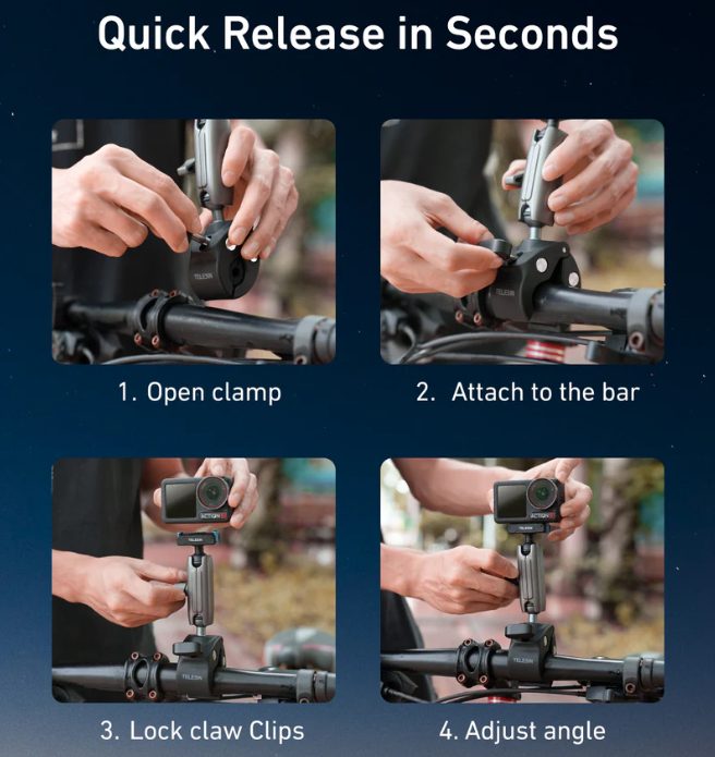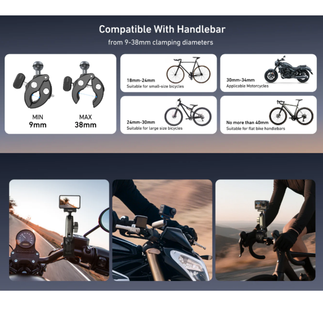 Kẹp càng cua Telesin cho Action 5 4 3 Osmo 360 gắn ghi đông xe xoay 360 độ tuỳ chỉnh