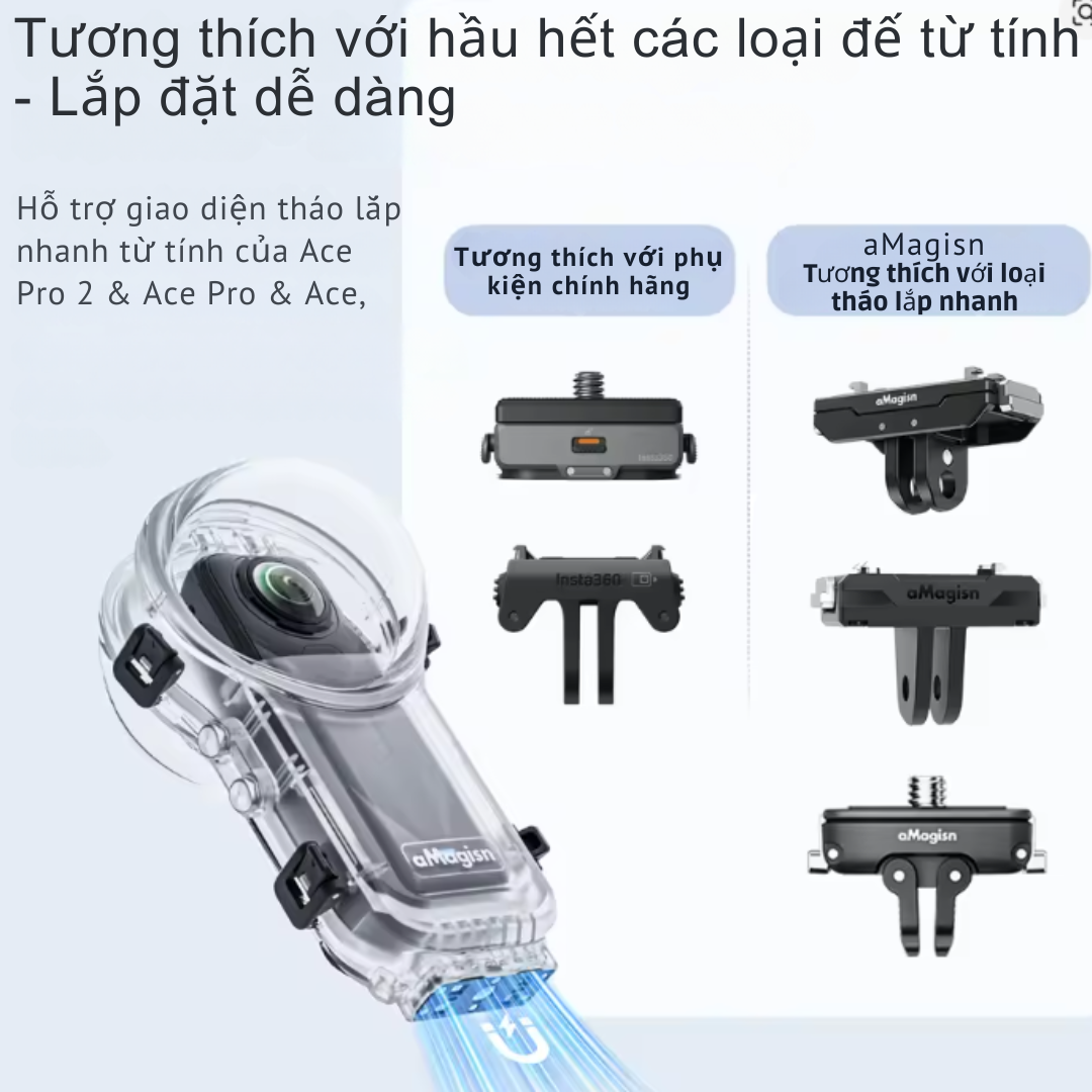 Khung chống nước aMagisn cho Insta360 X5 bơi lặn bảo vệ camera