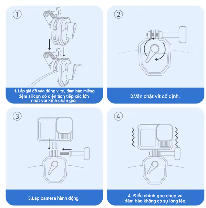 Ngàm CNC kẹp kính chắn gió gắn Actioncam cực kì tiện lợi chắc chắn góc quay tuyệt vời