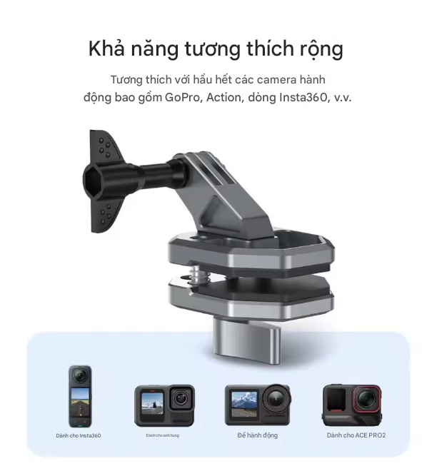 - Tương thích rộng rãi: Tương thích rộng rãi với hầu hết các loại camera thể thao, tương thích với Go pro 13/12/11/10/9/8 cho DJI Action 4 3 2 cho Insta360 X4 X3 X2, v.v.