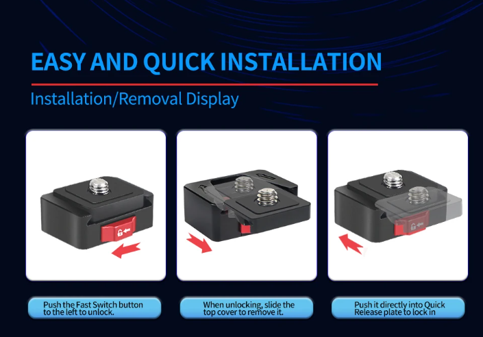 Cả đế gắn nhanh và đế tháo nhanh đều có lỗ định vị ARRI 1/4 inch, có thể sử dụng với các cột định vị D3.0/D5.0 mm trong các lỗ định vị ARRI 1/4" để ngăn xoay ngược.