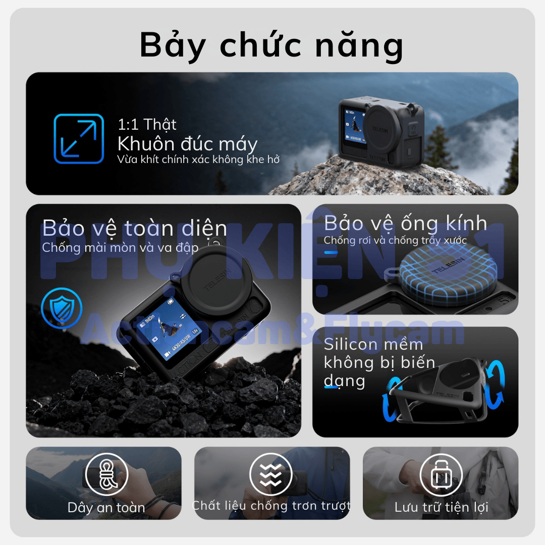 Ốp bảo vệ bằng silicon này là giải pháp lý tưởng cho người dùng DJI Action 6 cần sự bảo vệ đáng tin cậy trong khi vẫn duy trì đầy đủ chức năng của máy ảnh. Cho dù bạn là người đam mê phiêu lưu, vlogger hay người sáng tạo nội dung, chiếc ốp này đều mang đến: